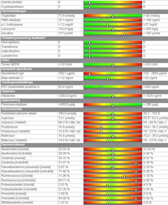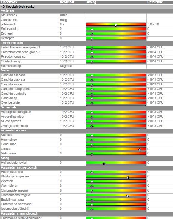 Een zeer gedetailleerde analyse, inclusief specialistische onderzoeken van alle mogelijke stoorzenders binnen de darmgezondheid, darmimmuniteit, ontstekingen, verteringskracht en mogelijke ziekteverwekkers en histamine.