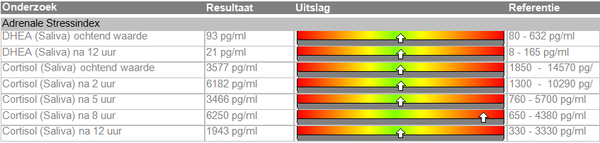 Veranderingen in de gangbare cortisolspiegels geven de reactie op stress aan. Veranderingen in de DHEA-spiegels geven de mate van adaptatie aan stress aan. Cortisol en DHEA moeten in verhouding tot elkaar worden beoordeeld.