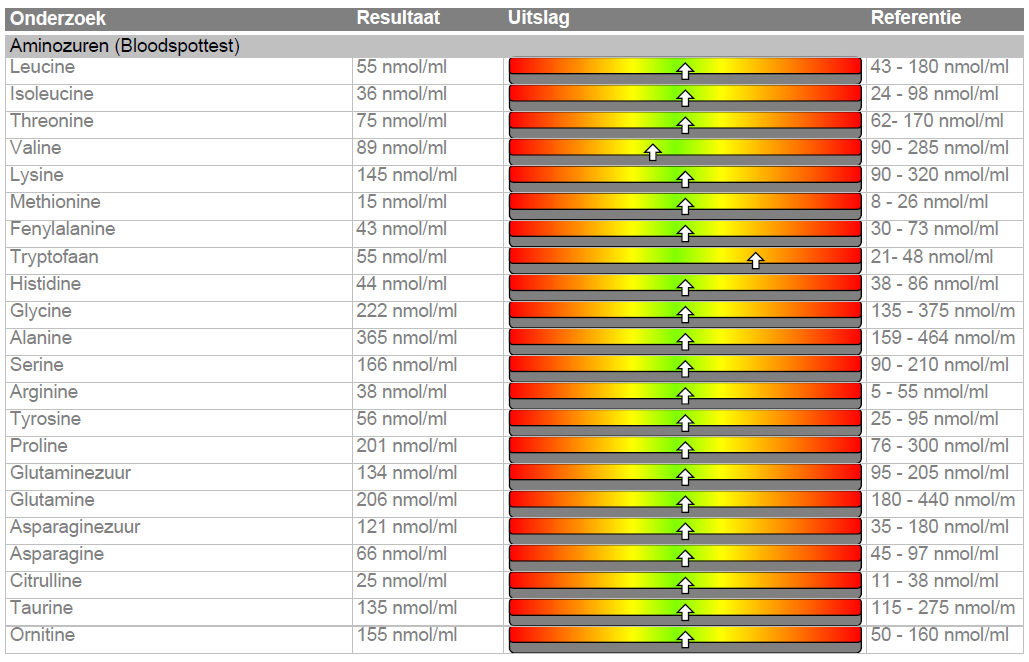 Een verhoogde waarde van leucine in het bloed kan verschillende oorzaken hebben. Het kan worden geassocieerd met aandoeningen zoals leucinose, een zeldzame erfelijke aandoening waarbij het lichaam leucine niet goed kan afbreken. Een verhoogd leucinegehalte kan ook worden waargenomen bij leverziekte, nierproblemen of bij bepaalde metabole stoornissen.